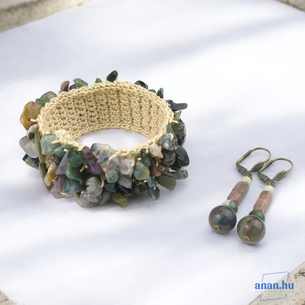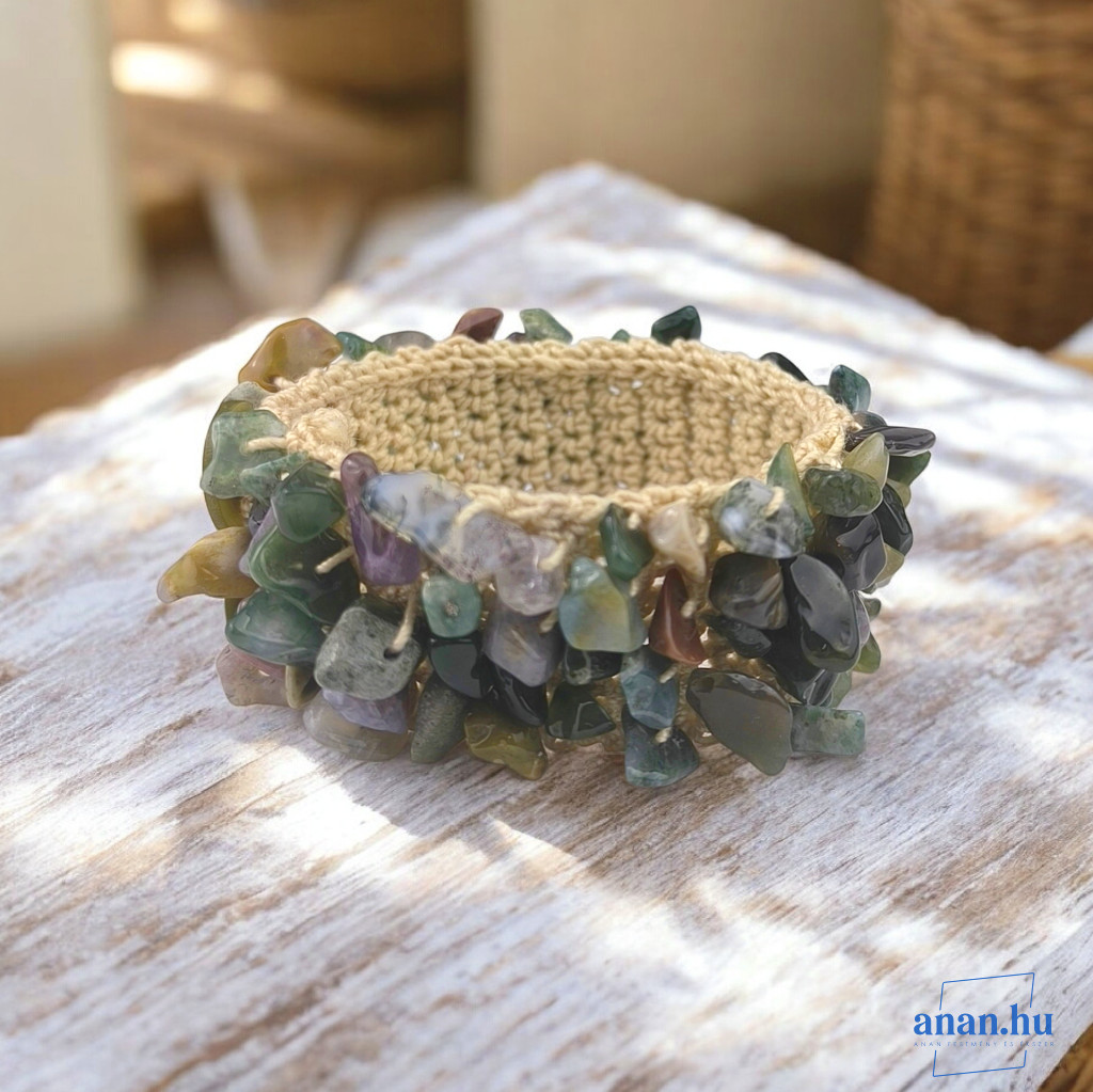ANAN, ásvány karkötő, hipoallergén, fémmentes ékszer, Indiai Achát