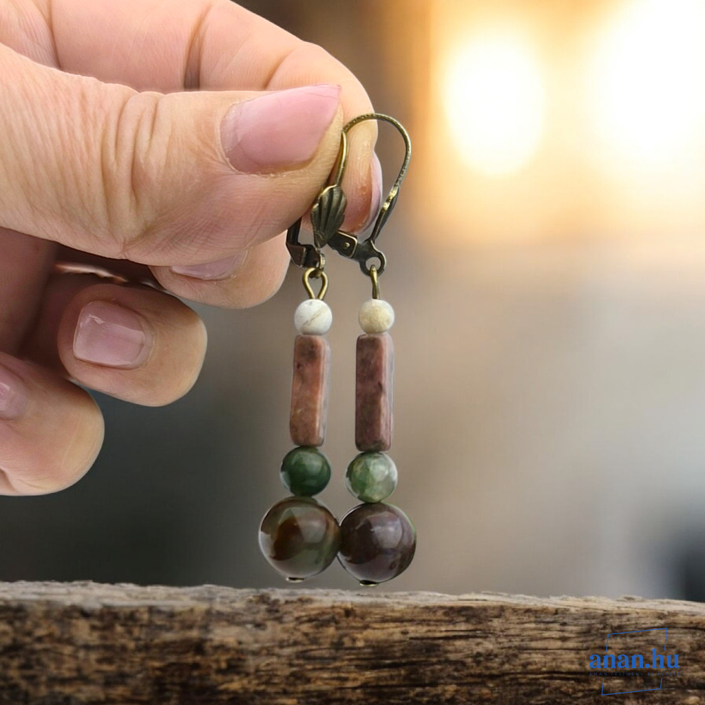 Ajánlunk hozzá indiai achát ásvány fülbevalót bronz szerelékekkel.
