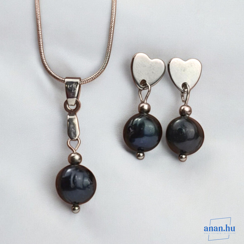 ANAN, antiallergén ékszer szett, édesvízi tenyésztett gyöngy, fekete, Pearl