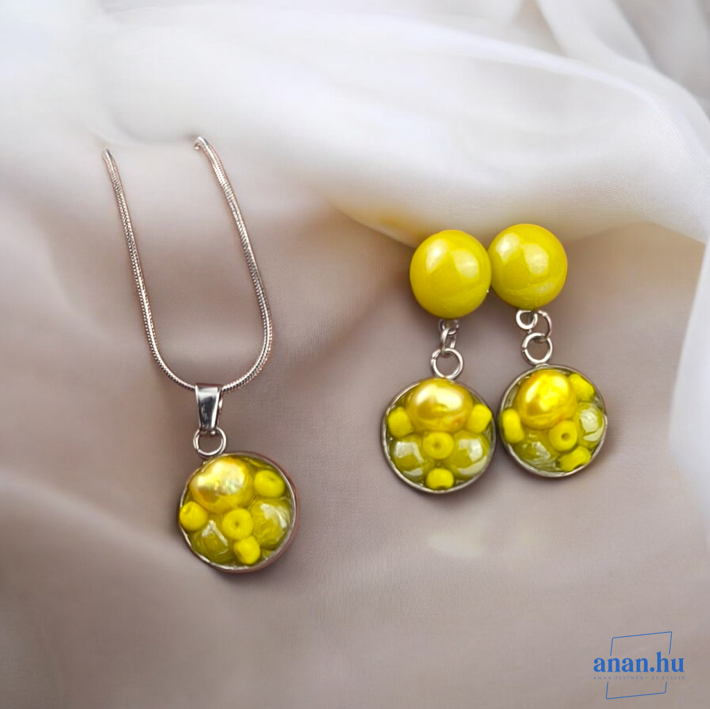 ANAN, antiallergén, nemesacél, ékszer, édesvízi gyöngy, sárga, Minimalista
