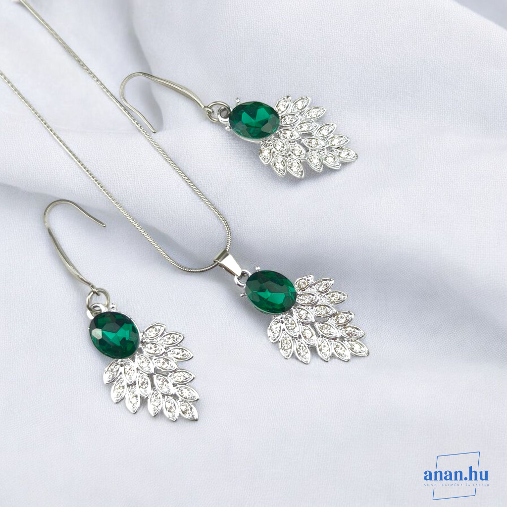 ANAN, alkalmi fülbevaló, nyaklánc, üvegkristály, zöld, Versailles-i Ragyogás