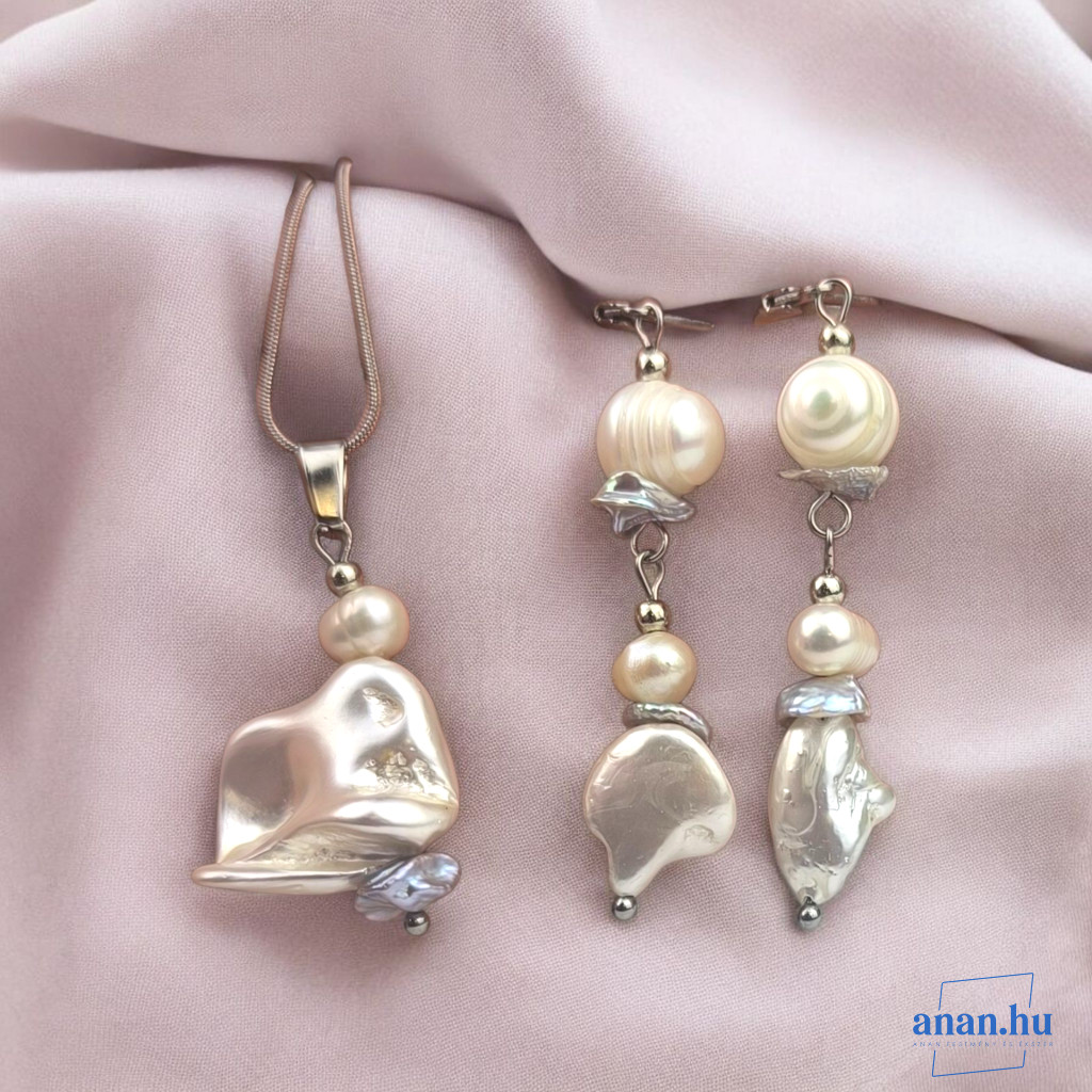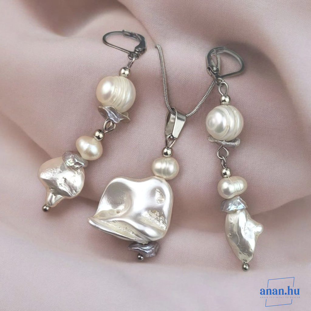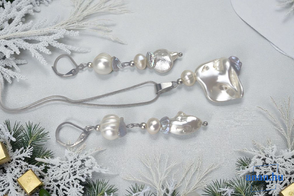 ANAN, antiallergén, egyedi ékszer szett, édesvízi gyöngy, Fehér ragyogás