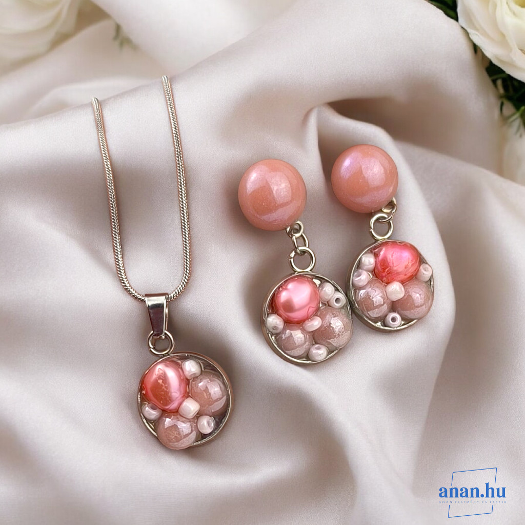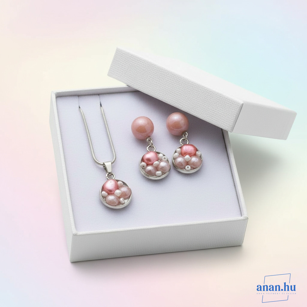 ANAN, antiallergén, nemesacél, ékszer, édesvízi gyöngy, rózsaszín, Minimalista