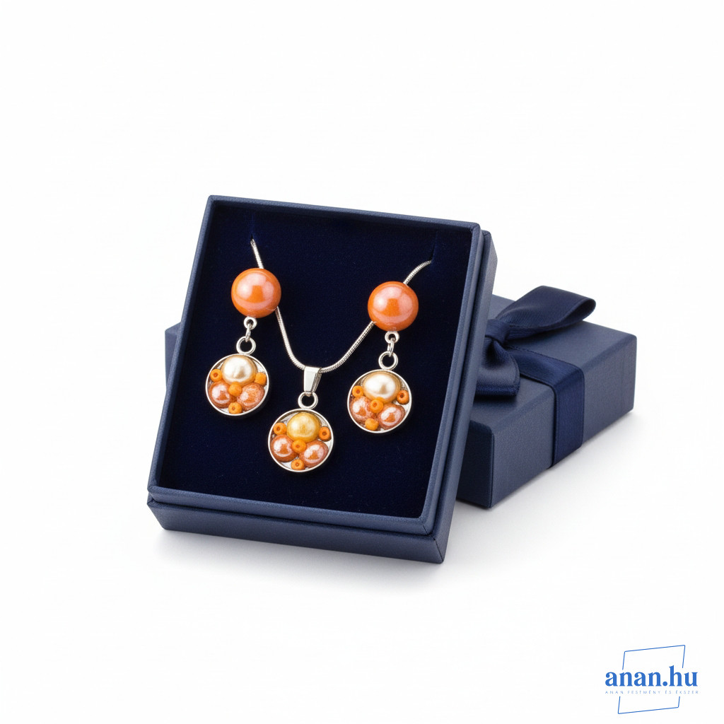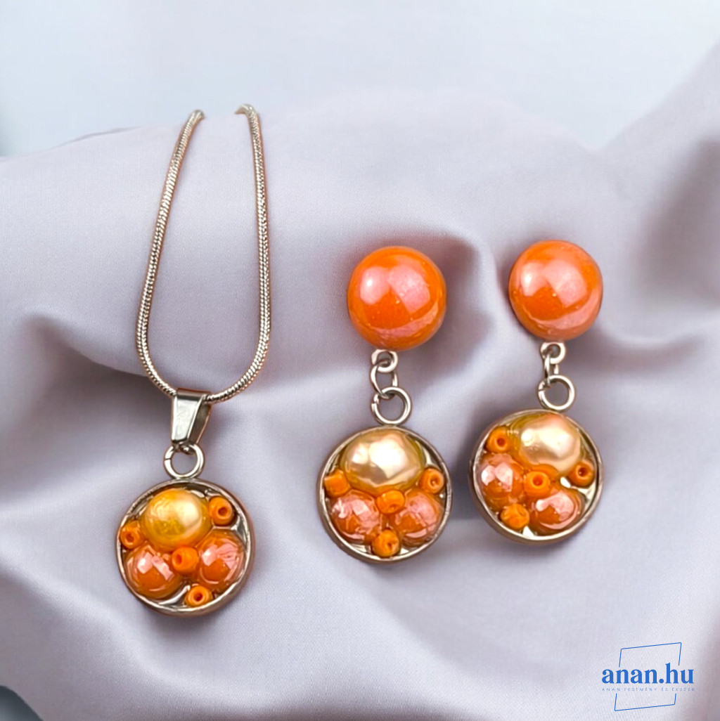 ANAN, antiallergén, nemesacél, ékszer, édesvízi gyöngy, narancssárga, Minimalista
