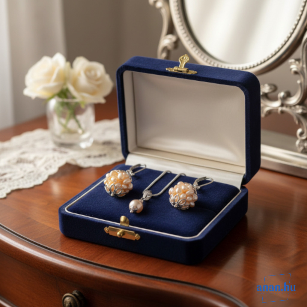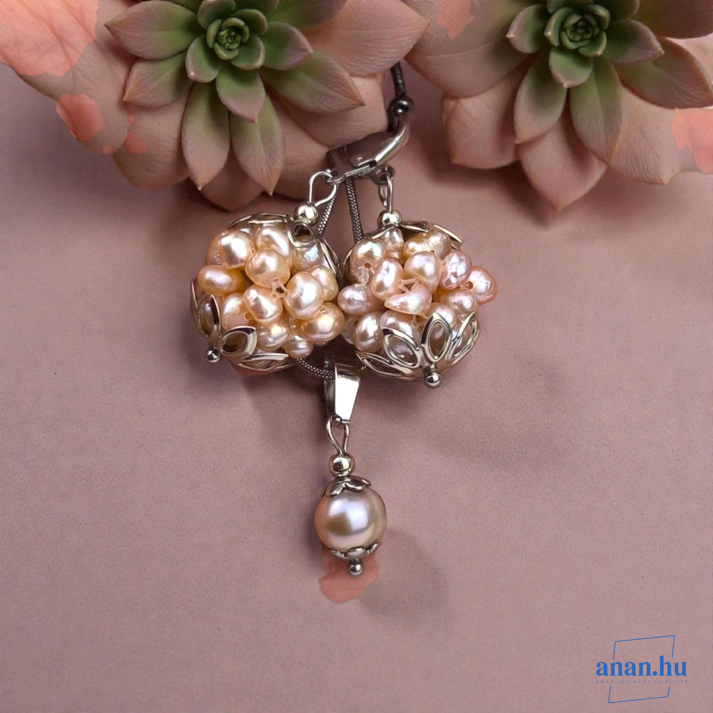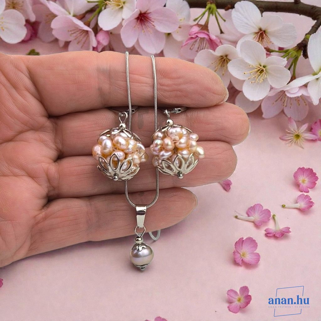 A fülbevaló 1,8 cm átmérőjű édesvízi gyöngyöcskékből készült, antiallergén nemesacél francia kapoccsal és szerelékekkel. Hossza kapoccsal: 4 cm.