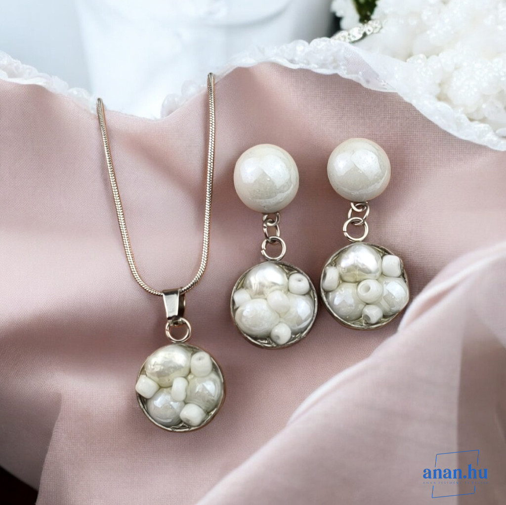 Édesvízi tenyésztett gyönggyel díszített ékszer szett.