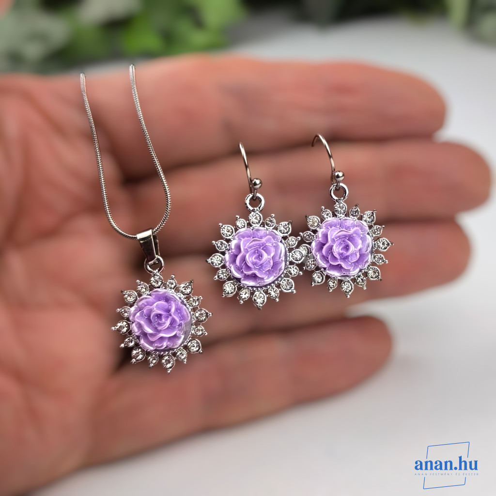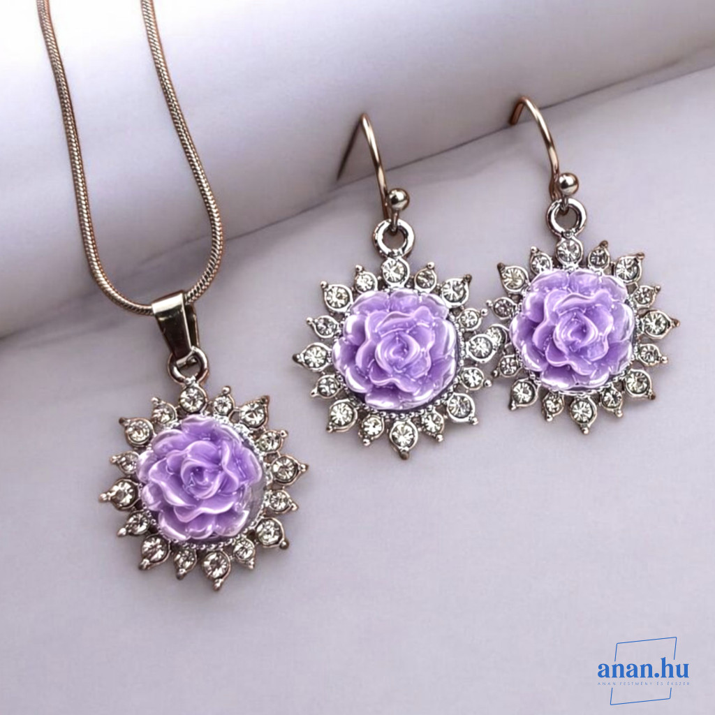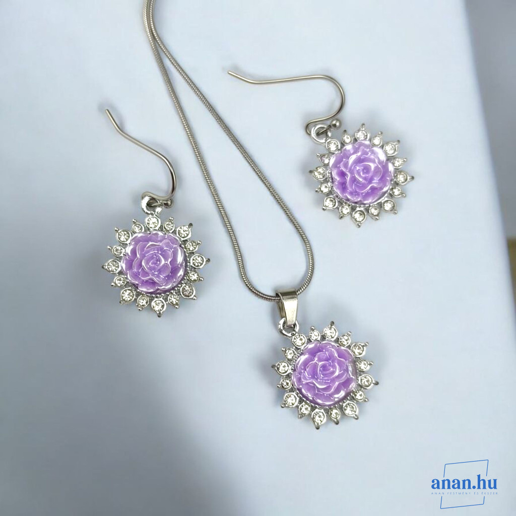 ANAN, alkalmi fülbevaló, nyaklánc, Lila Rózsa
