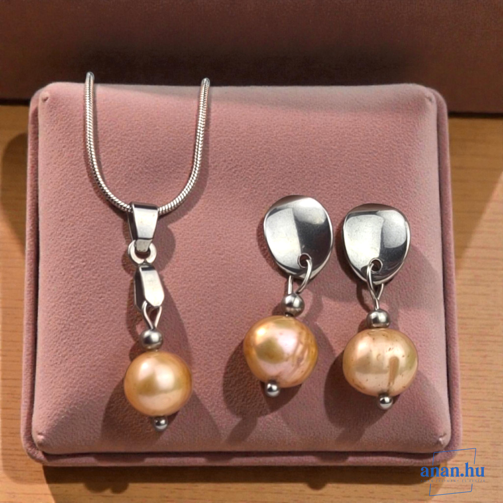 ANAN, antiallergén ékszer szett, édesvízi tenyésztett gyöngy, púder rózsaszín, Pearl