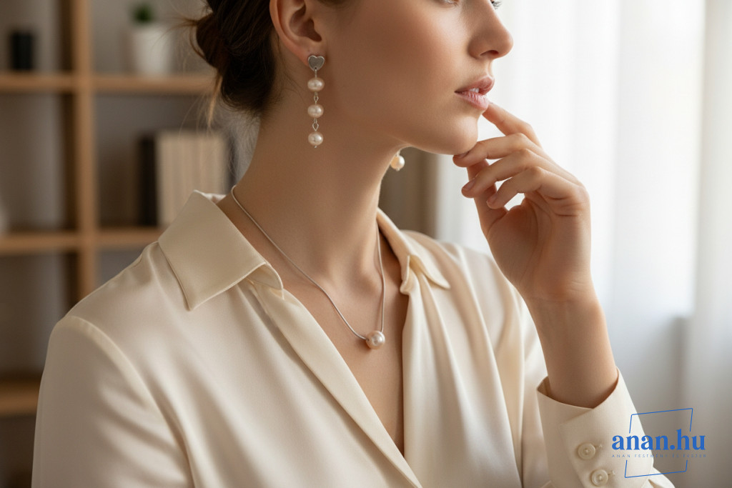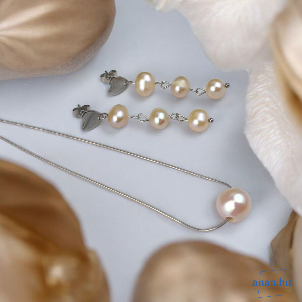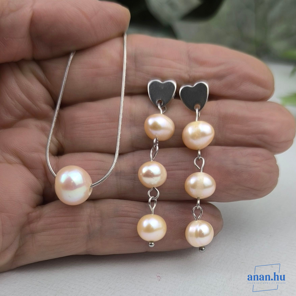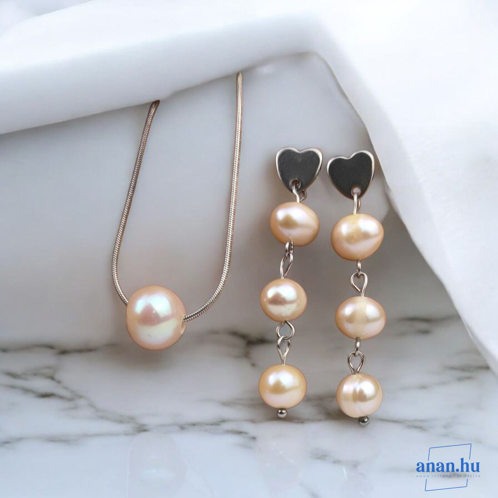 ANAN, antiallergén ékszer szett, édesvízi tenyésztett gyöngy, pasztell rózsaszín, Pearl
