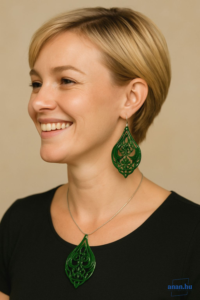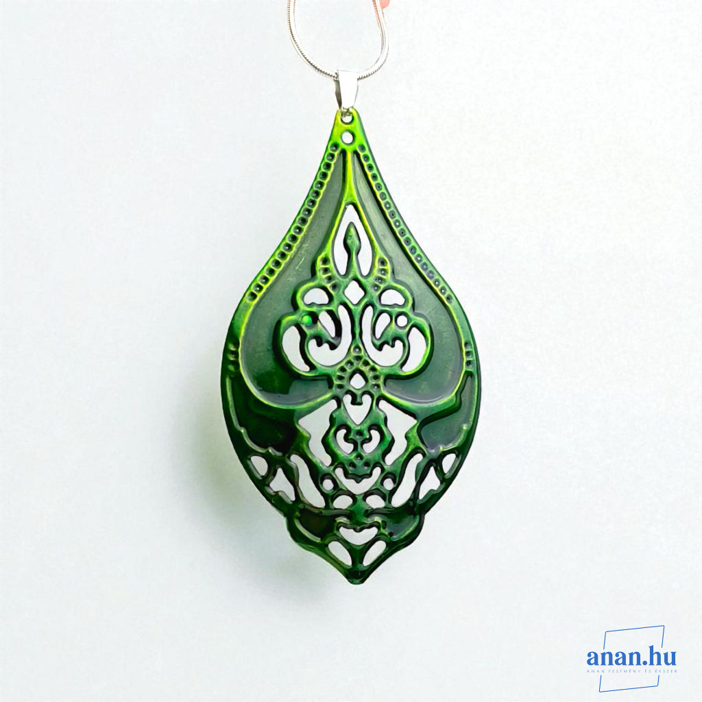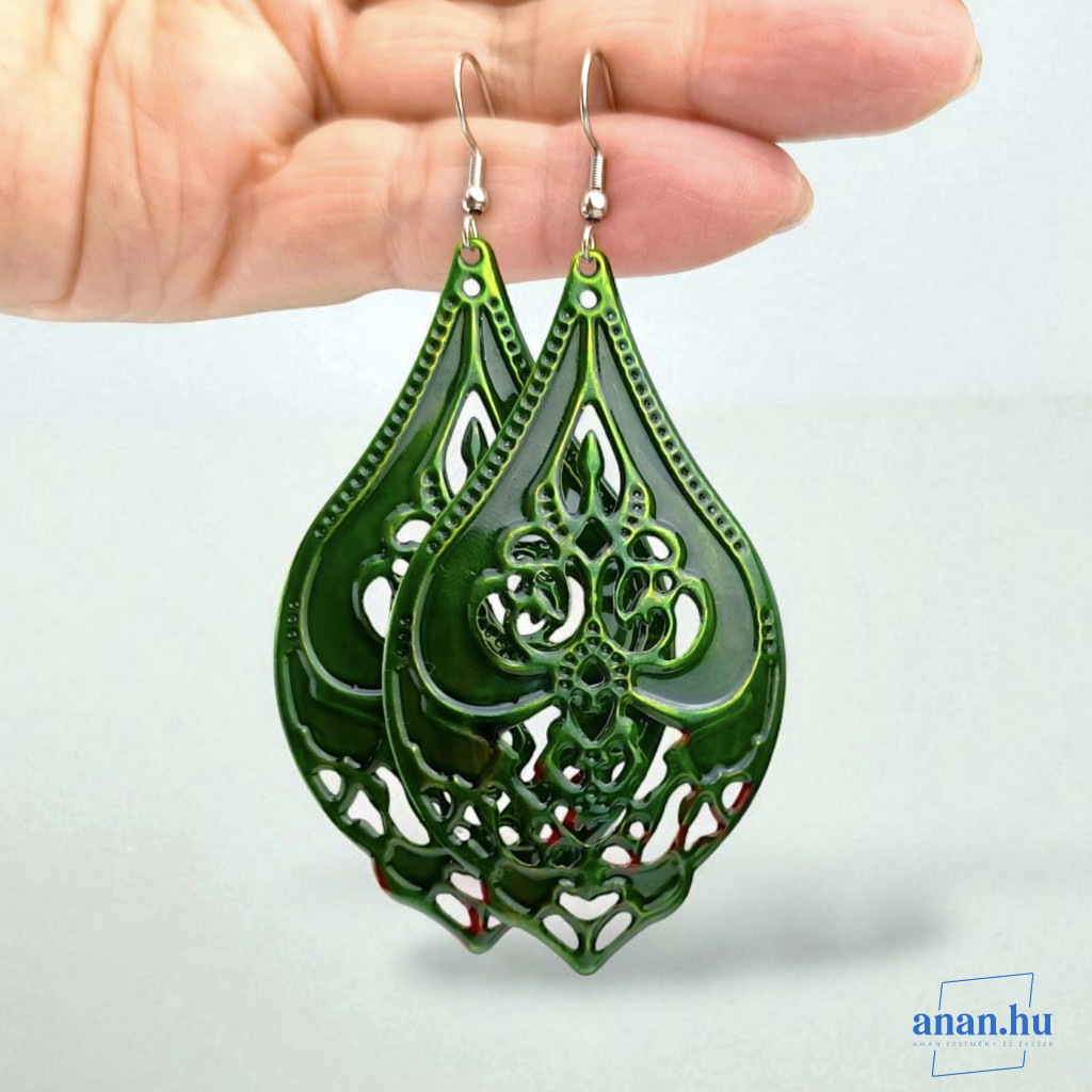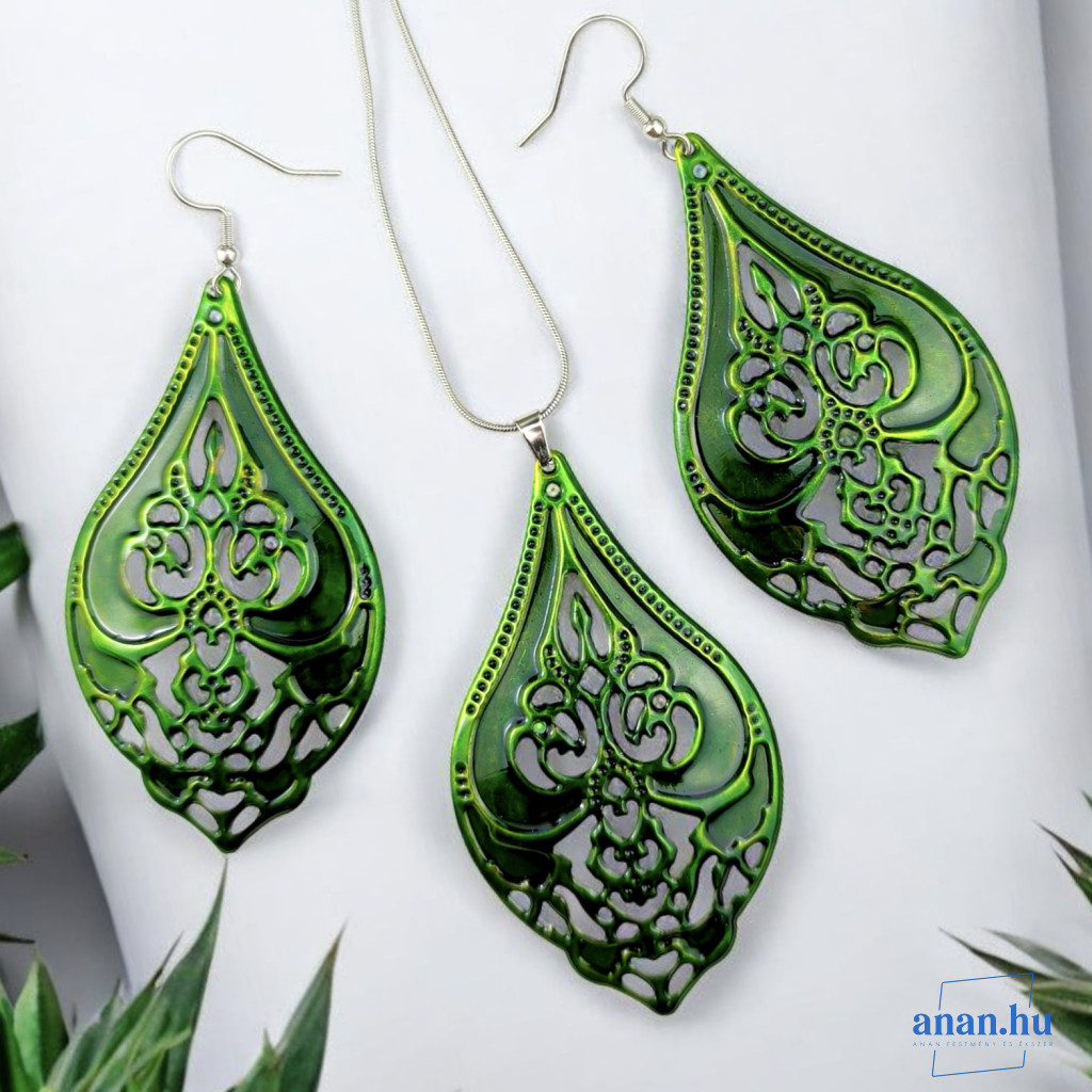 ANAN, kézzel festett ékszer, fülbevaló, nyaklánc, erdei zöld, Mesés Kelet