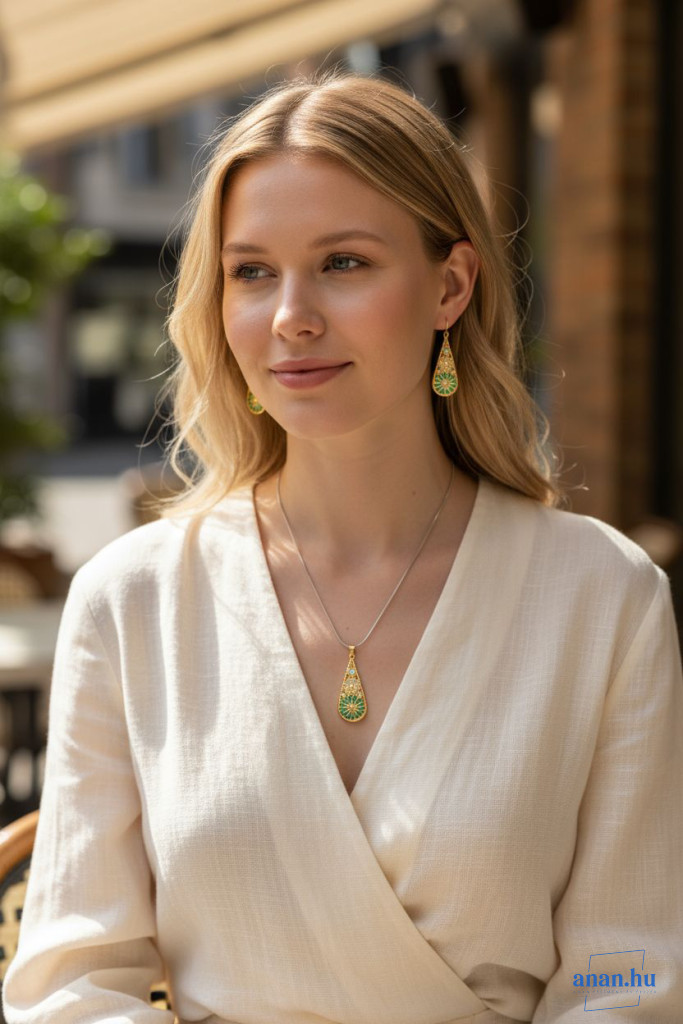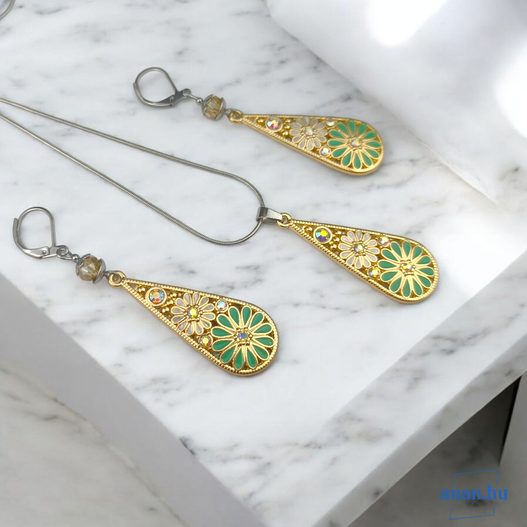 ANAN, fülbevaló, nyaklánc, arany-zöld, Csodás India