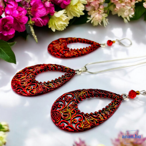 ANAN, kézzel festett, egyedi ékszer, fülbevaló, nyaklánc, Bíbor Csipke