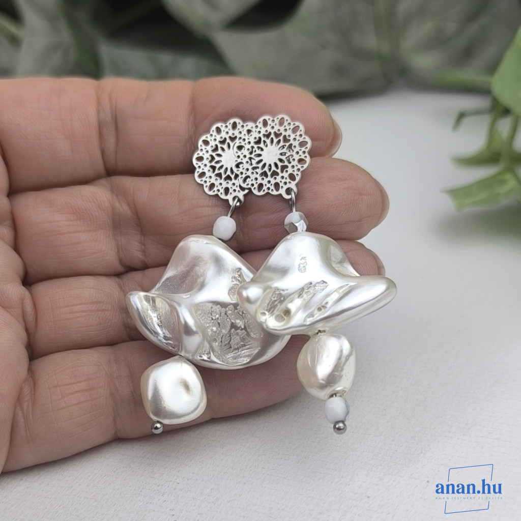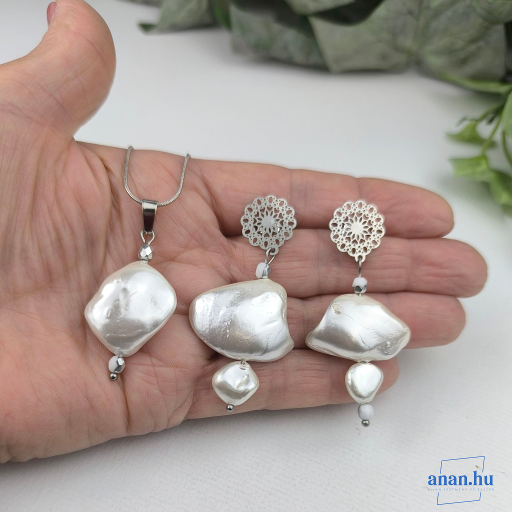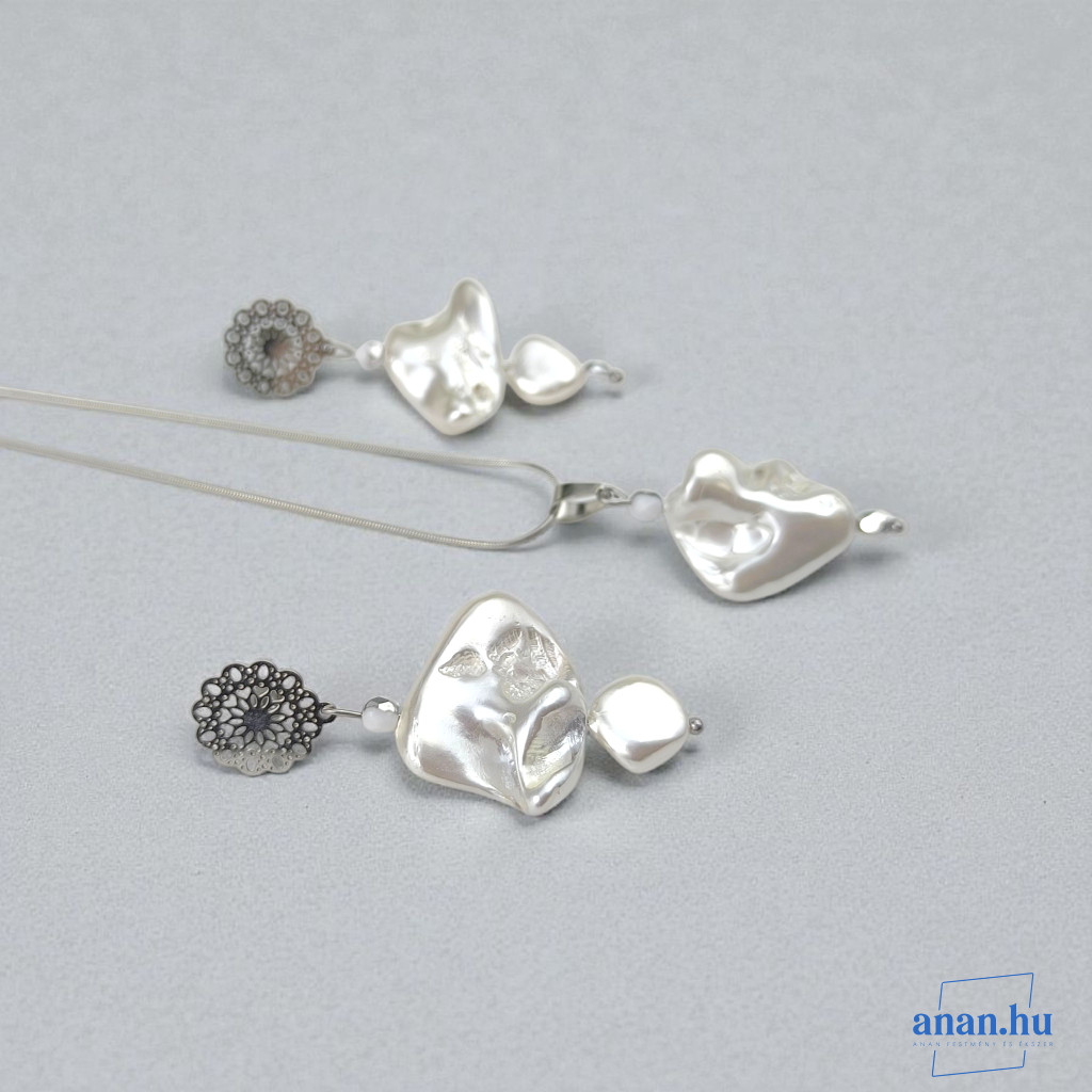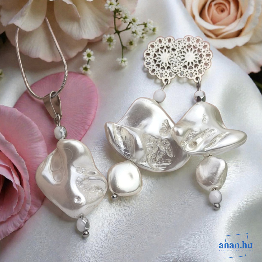 ANAN, antiallergén, egyedi ékszer, fülbevaló, nyaklánc, Fehér Selyem