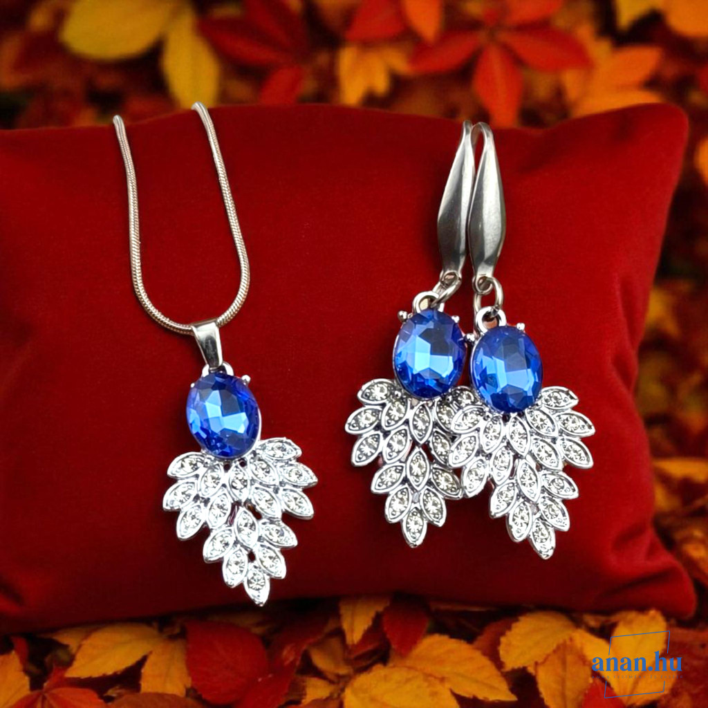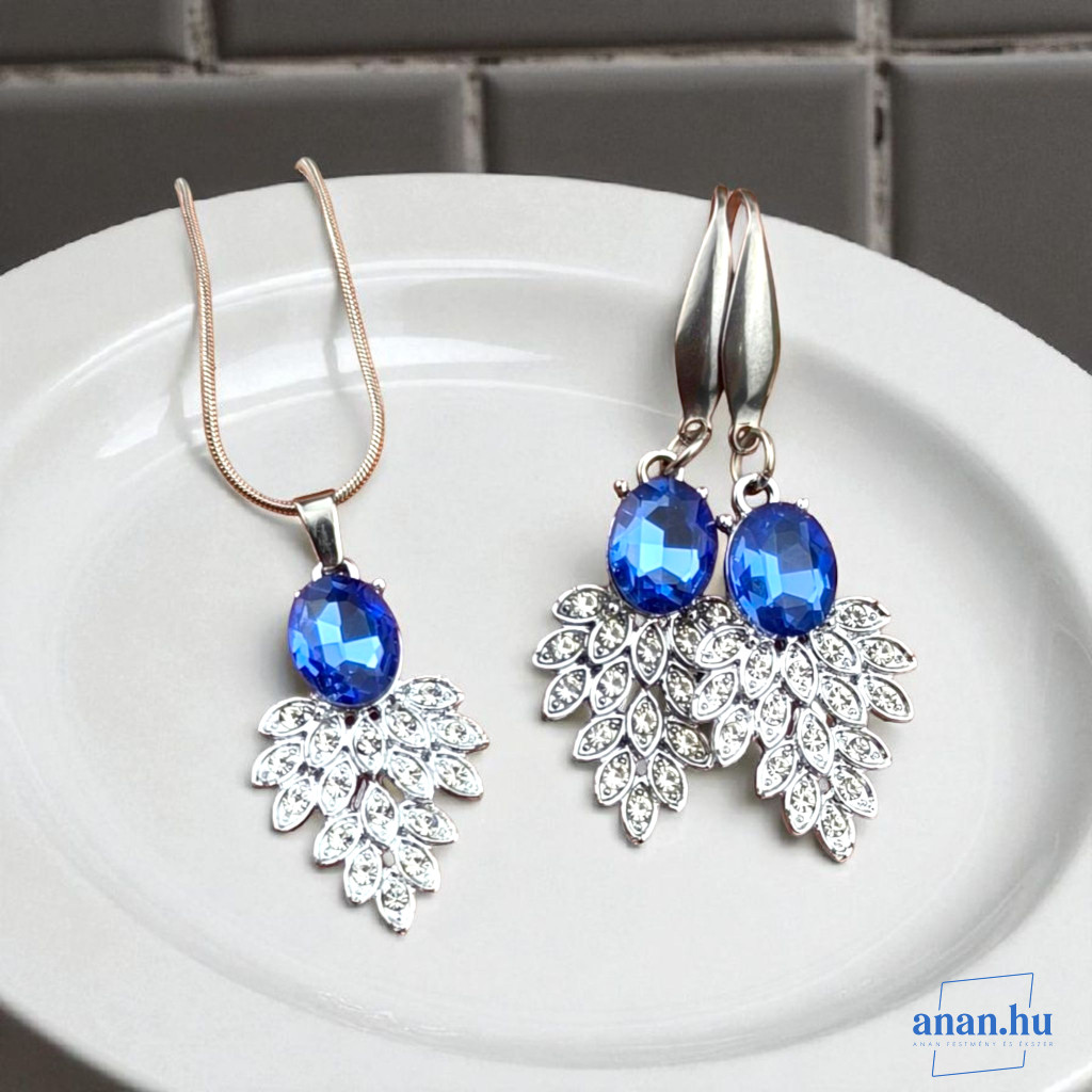 ANAN, alkalmi fülbevaló, nyaklánc, üvegkristály, kék, Versailles-i Ragyogás