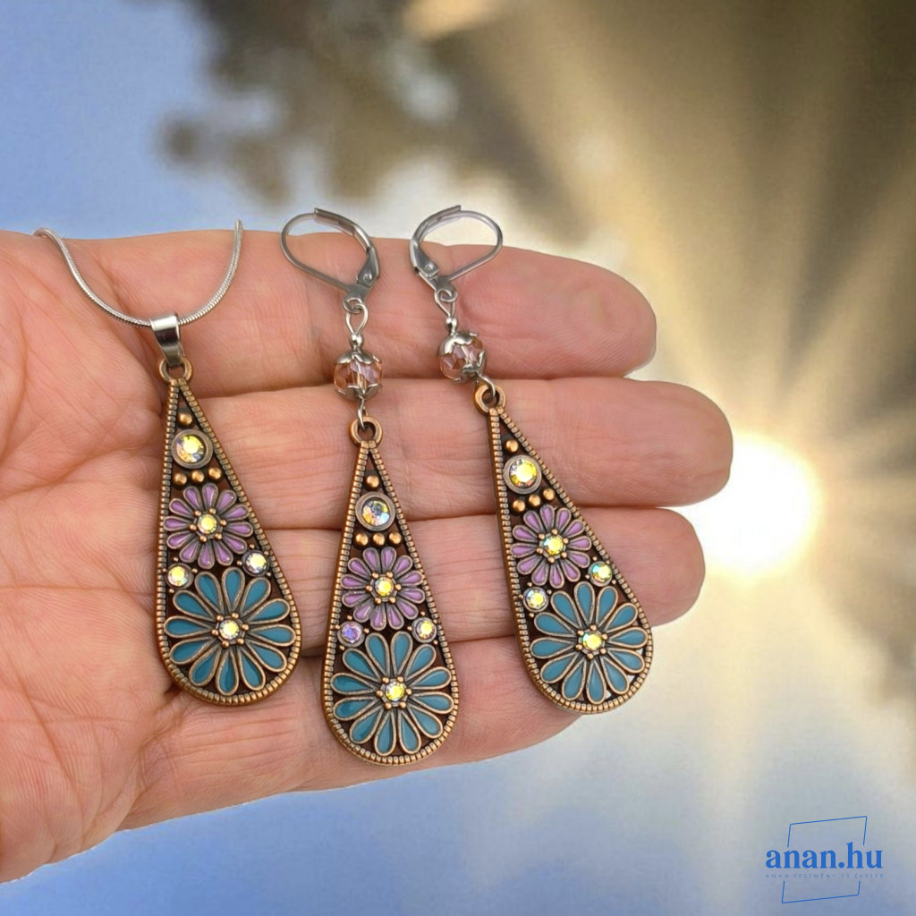 ANAN, fülbevaló, nyaklánc, kék-lila, Csodás India