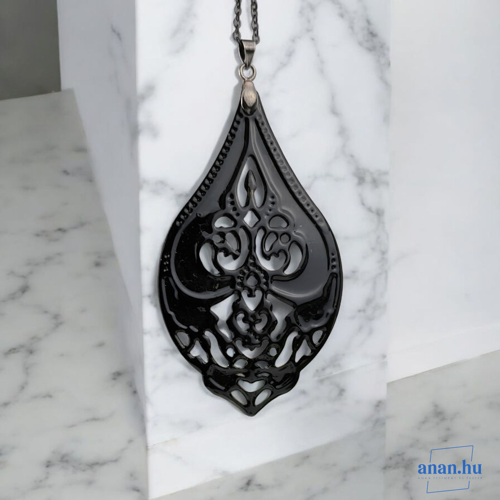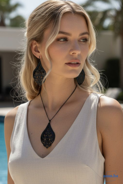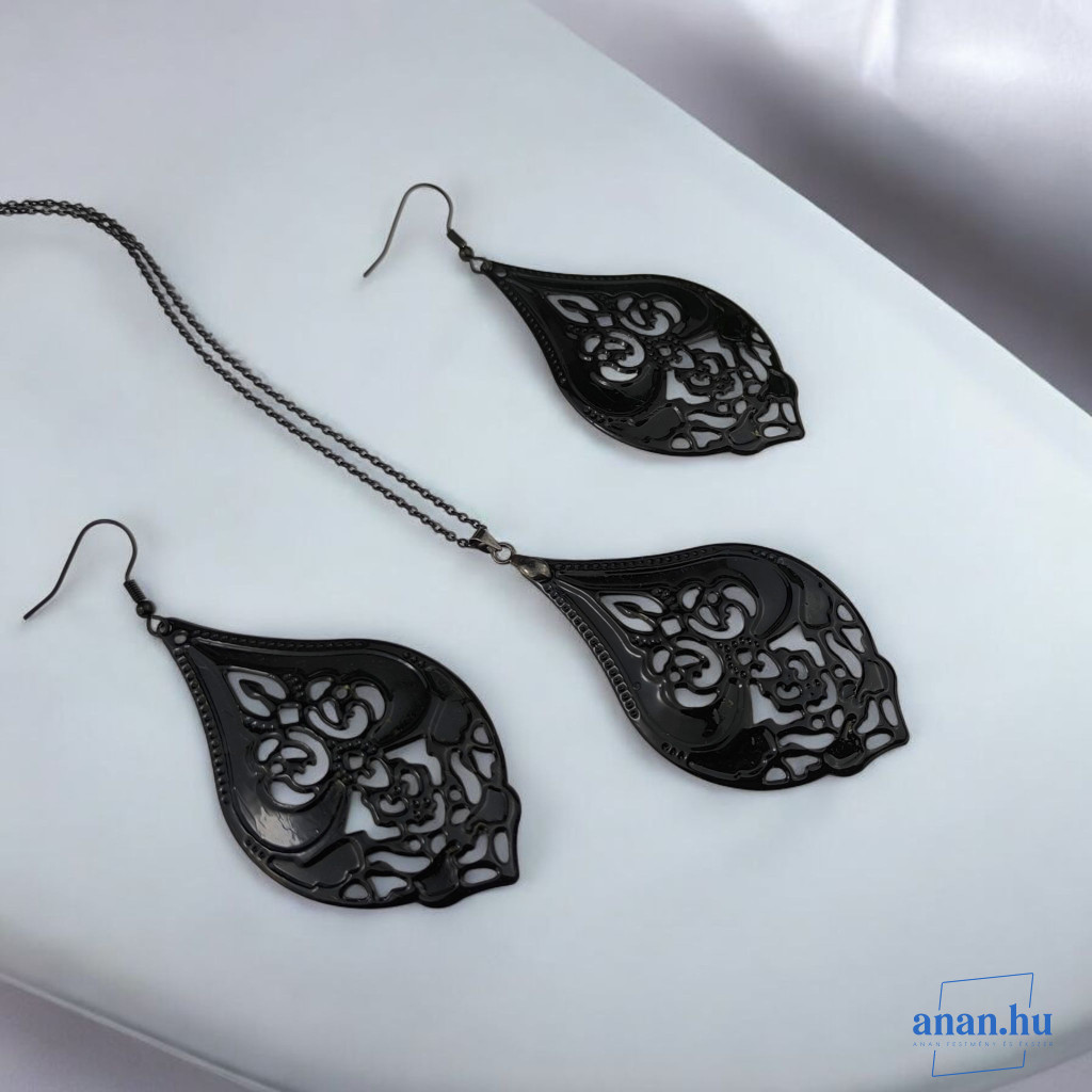 ANAN, kézzel festett ékszer, fülbevaló, nyaklánc, fekete, Mesés Kelet