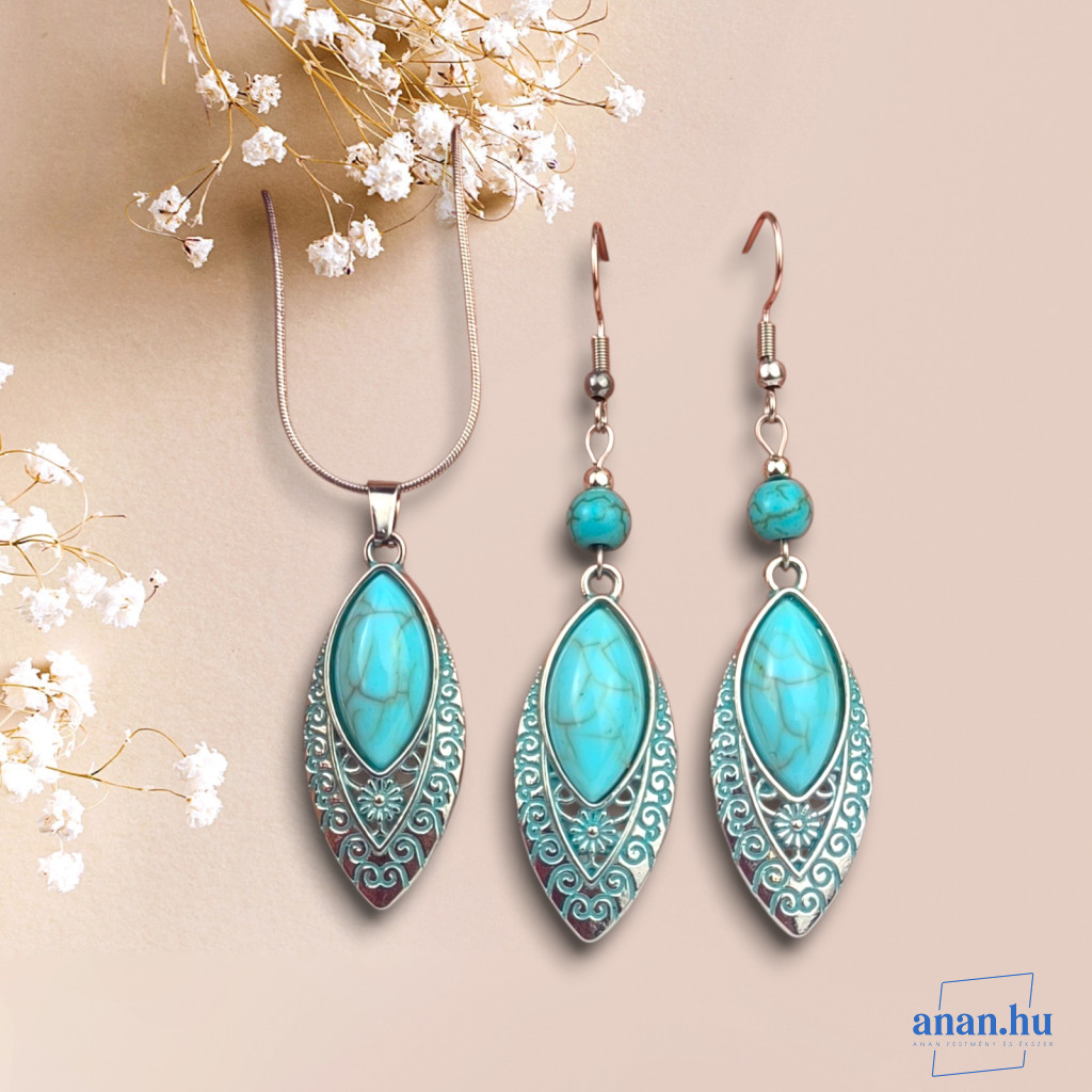 ANAN, fülbevaló, nyaklánc, türkizkék, Marrakesh